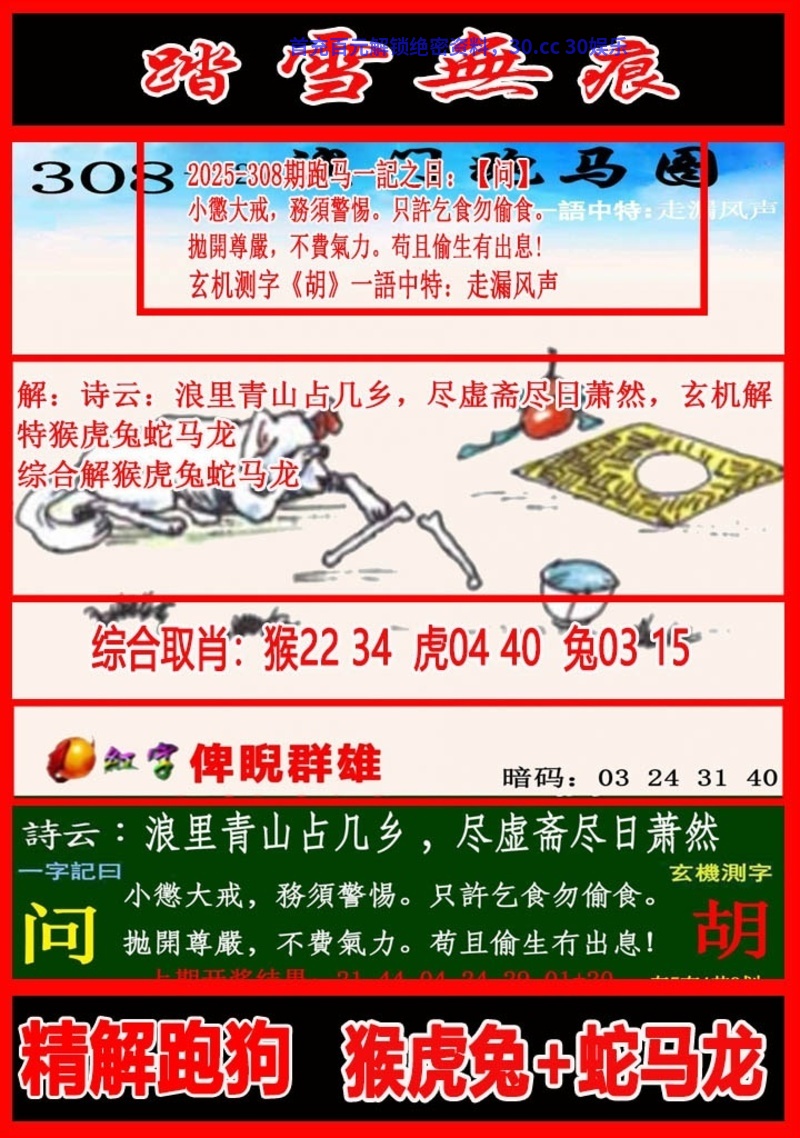308期【虎鼠猴龙马牛羊鸡】开:兔39准